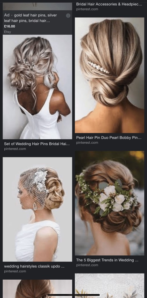 Bring photos of your dress, earrings, and headpiece to your Hair Trial. Show pictures of the style inspiration you have for your big day, just because it’s your wedding day doesn’t mean that your partner wants a new version of you. They want you, so try not to go so opposite of your natural style tendencies. Go with what feels comfortable.