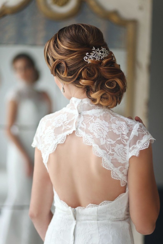 Updos are one of the most popular hairstyles for brides due to the vast creations available. An updo can look very formal, with each hair intricately placed or undone for a more whimsical feel. You can also add bridal jewelry to enhance the hairstyle and to add more flair.
